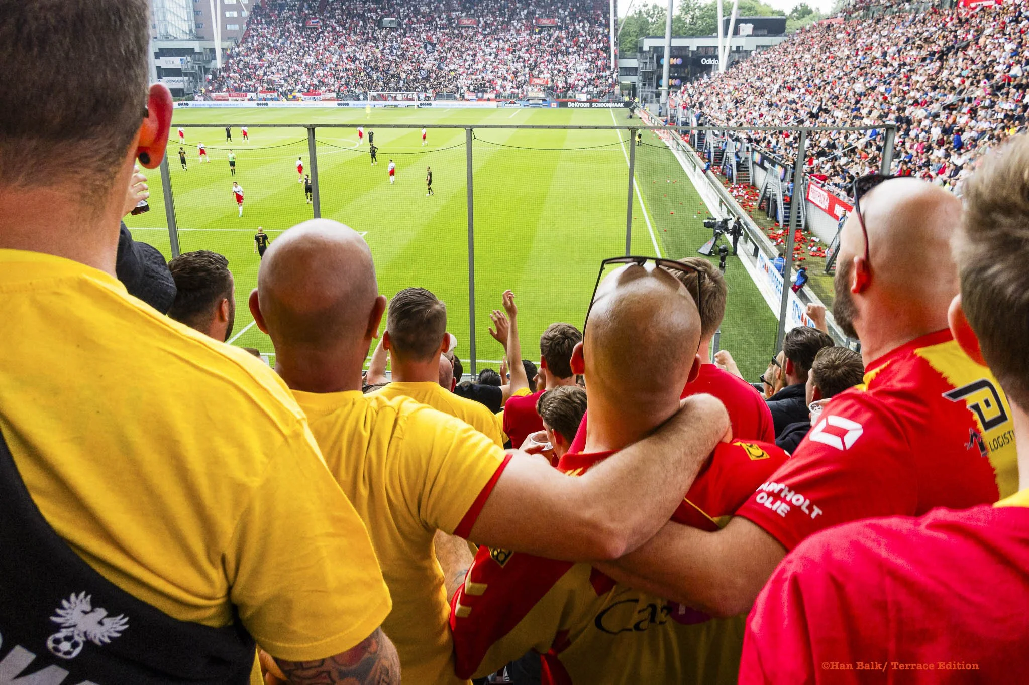 ©Han Balk/ Terrace Edition. Go Ahead Eagles fans see off their team to Utrecht.